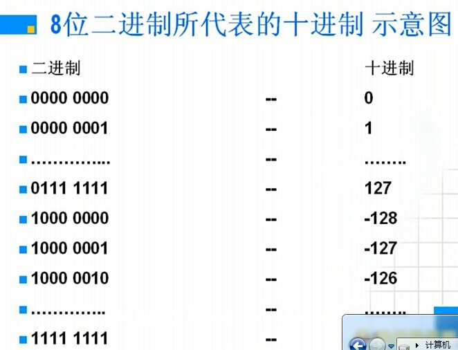 先求与该负数线对应正整数的二进制代码,然后将(除符号位)所有位取反,末尾加1, 不够位数时,左边补1