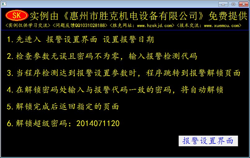 3.当程序检测达到报警设置参数时,程序跳转到报警解锁页面