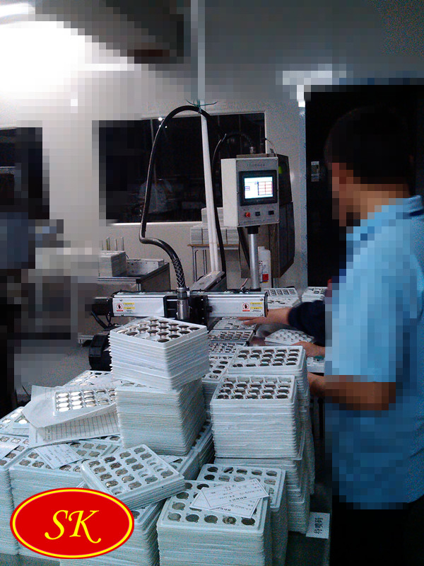 6. 托盘放置好后按下启动开关,双手远离托盘,设备进行自动喷印。